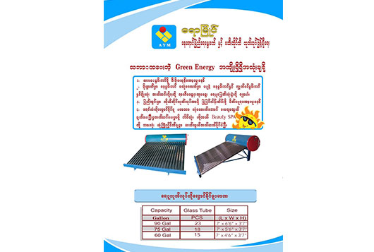 ေနေရာင္ျခည္စြမ္းအင္သံုး ေရေႏြးစက္ႏွင့္ စတီးေရတိုင္ကီ လုပ္ငန္း။