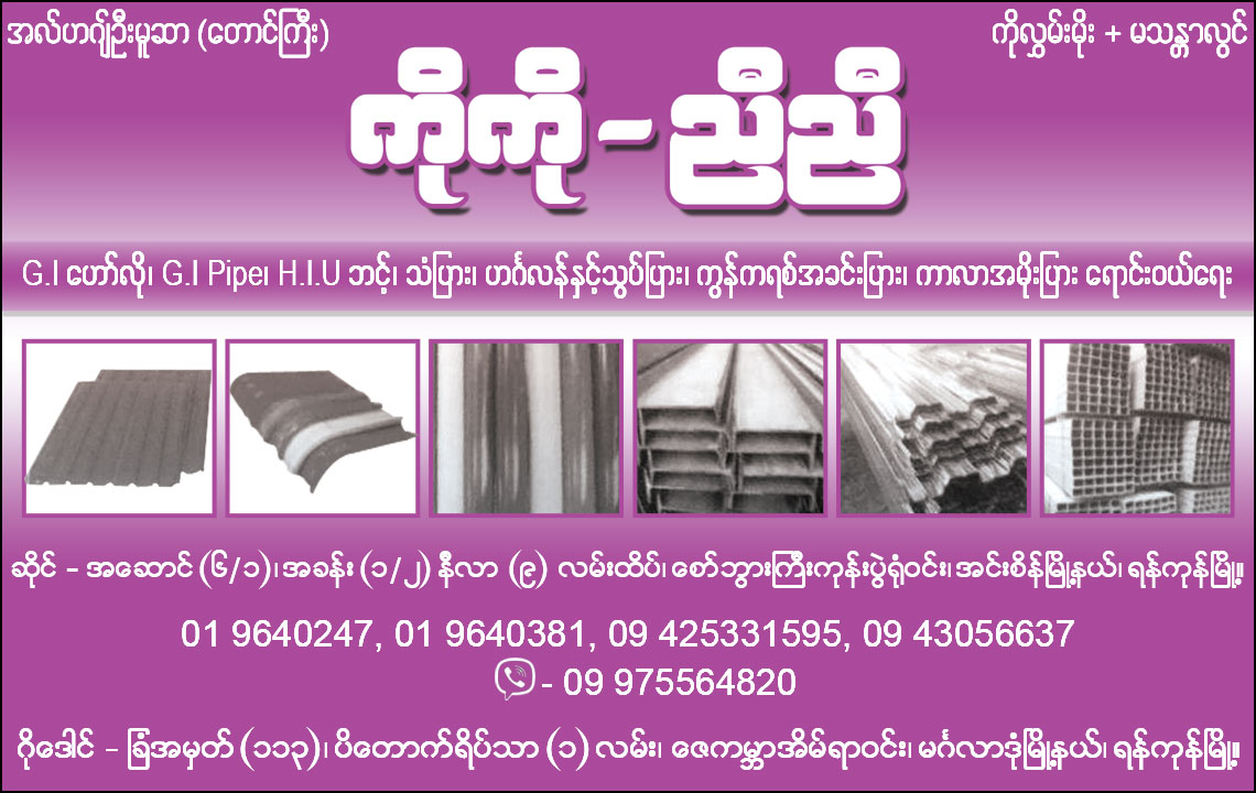 သြပ္ျပား၊ ကြန္ကရစ္အခင္းျပား၊ ကာလာအမုိးျပား၊ GI Hallow ႏွင့္ အိမ္ေဆာက္ပစၥည္းေရာင္းဝယ္ေရး