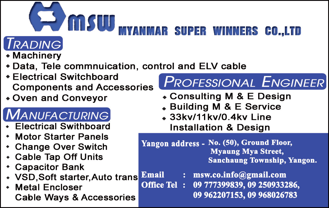Myanmar Super Winners is an established supplier covering a wide range of ELV cables, electrical installation and LT switch boards components & accessories.