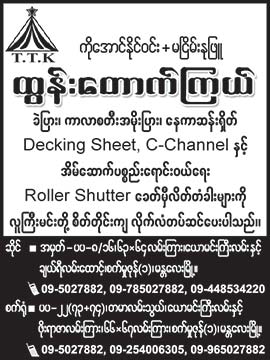 ခဲျပား၊ ကာလာစတီးအမိုးျပား၊ ေနကာဆန္းရွိတ္၊ ေရာင္စံုပလိန္းျပား၊ အိမ္ေဆာက္ပစၥည္းေရာင္းဝယ္ေရး။